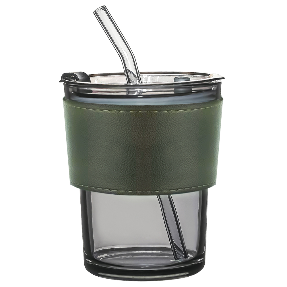 Стакан стеклянный с трубочкой и капхолдером Karamel, зелёный