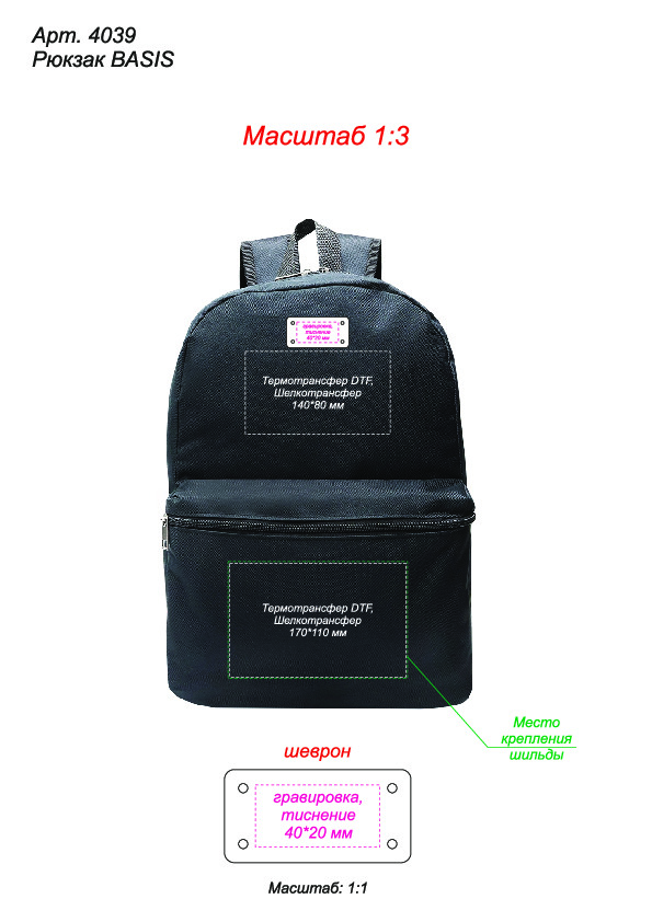 Возможна установка шильды (арт. 4090, 4091, 4092) на передний карман и нанесение на неё гравировки / тампопечати