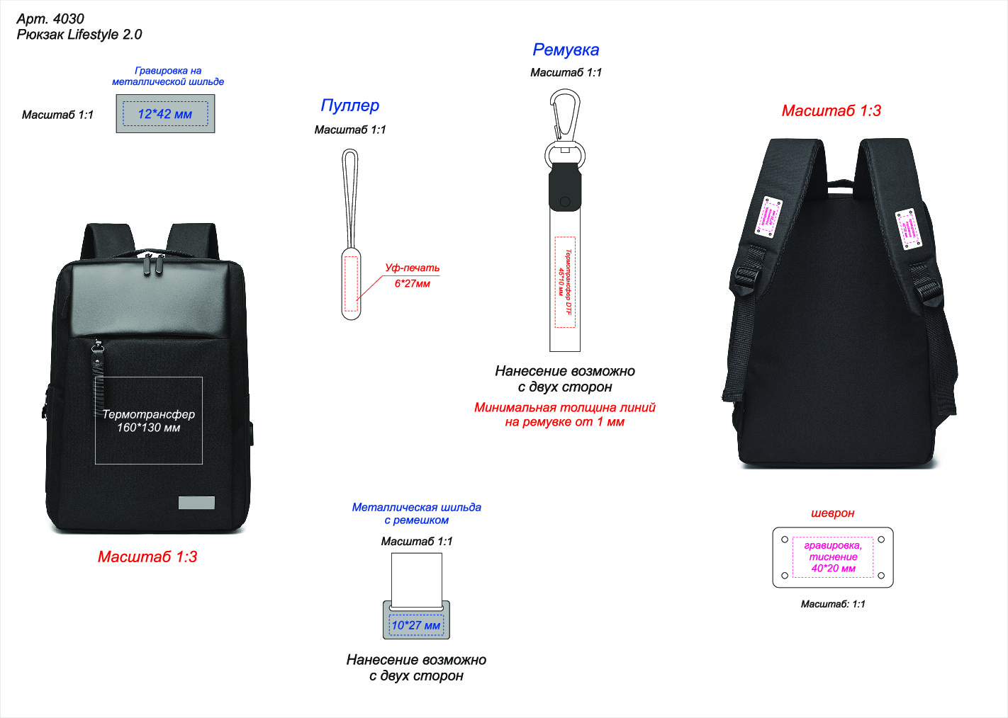 Возможна кастомизация с помощью ремувки (арт. 4094, 4097) в восьми вариантах цвета и нанесение на неё термопечати.