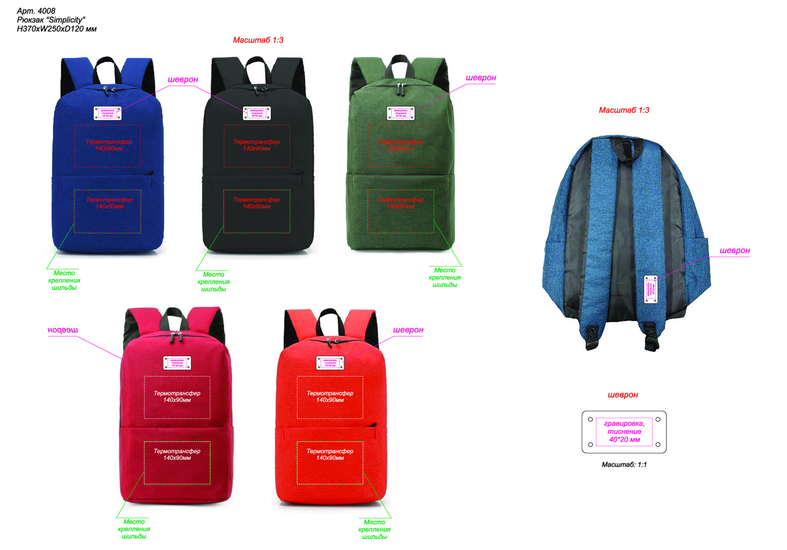 Возможна установка шильды (арт. 4090, 4091, 4092) на передний карман и нанесение на неё гравировки / тампопечати