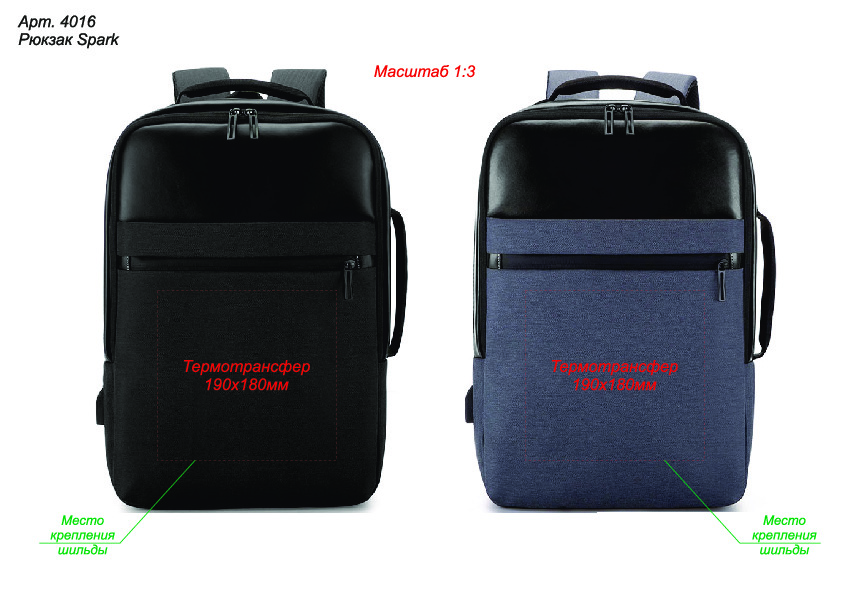 Возможна установка шильды (арт. 4090, 4091, 4092) на передний карман и нанесение на неё гравировки / тампопечати