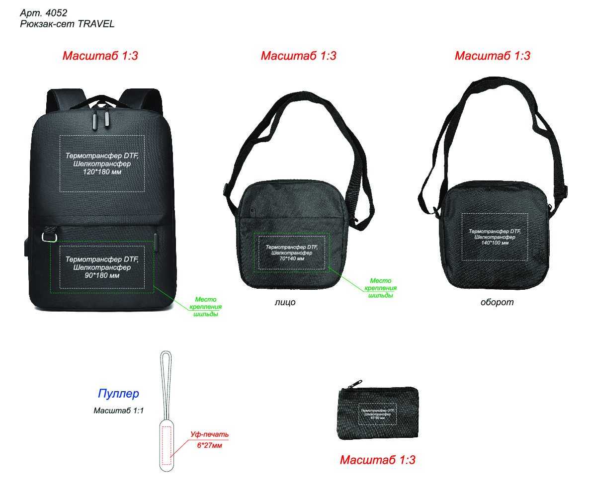 Рюкзак-сет TRAVEL, черный