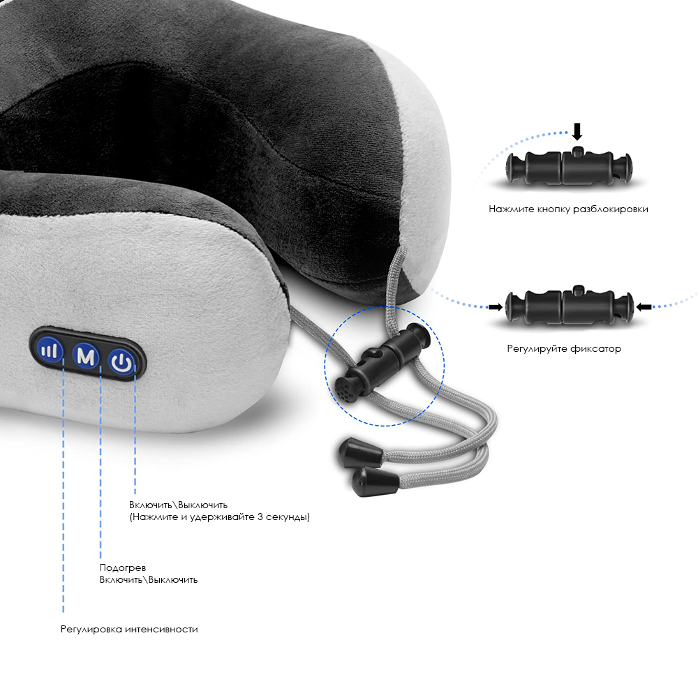 Zen сочетает массаж, подогрев и эргономичную поддержку шеи, помогая расслабиться дома, в офисе, автомобиле или в путешествии.